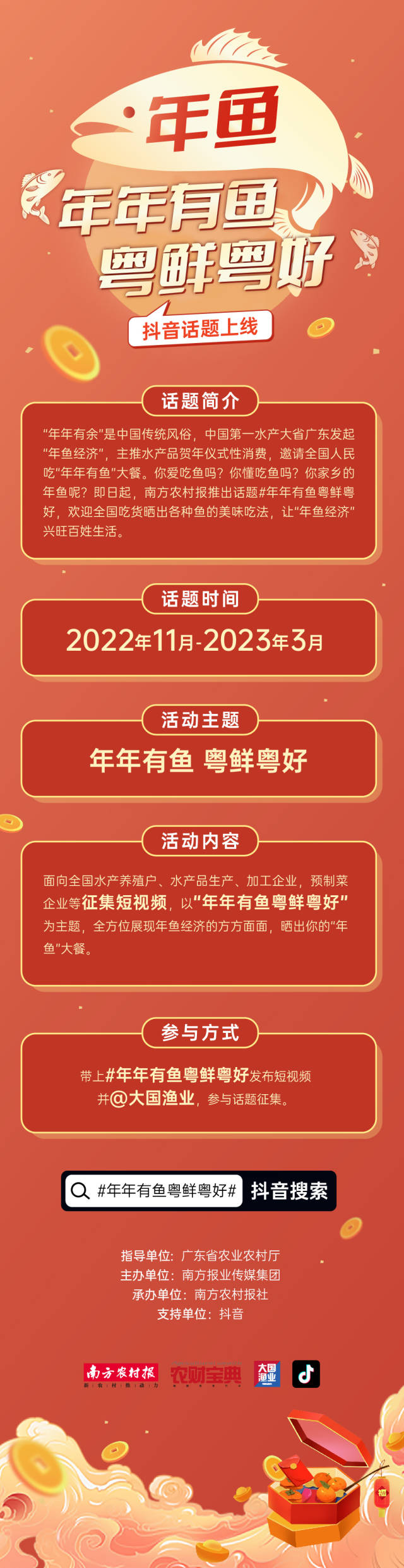 参与方式:带上#年年有鱼粤鲜粤好# 发布短视频并@大国渔业,参与话题征集,分享你和“年鱼”的故事。