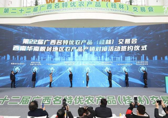2022年12月29日,第22届广西名特优农产品交易会(以下简称农产品交易会)在桂林国际会展中心开幕,西南、华南脱贫地区农产品产销对接活动同步举办,广东年鱼、预制菜、徐闻菠萝、菌菇等百余种特色农产品亮相,受到参观嘉宾与消费者的欢迎。