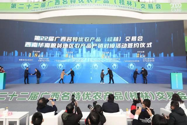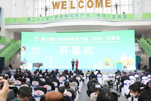 2022年12月29日—2023年1月1日,第22届广西名特优农产品交易会(简称“交易会”)在桂林国际会展中心举办。广西壮族自治区人民政府副秘书长梁磊,原农业部党组成员、中国农产品市场协会会长张玉香,自治区农业农村厅党组副书记、副厅长许瑾,桂林市委副书记、市长李楚出席开幕式。