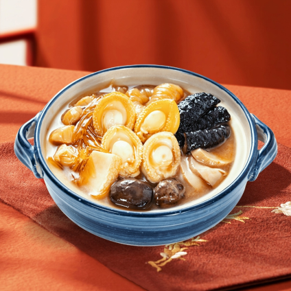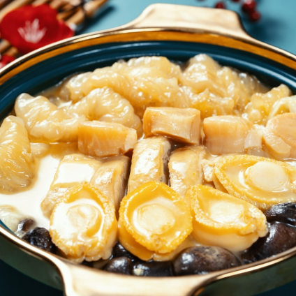 将鲍、参、翅、肚等几十种原料,