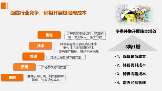 如何合理降低负债,优化债务结构是企业接下来需要重点关注的课题,张祥斌提醒广大猪企“越是在行业剧烈波动期,越要遵循稳健发展战略,现金为王!”同时,企业也要学会合理利用闲置资产,通过减少资产闲置,尽可能降低相关费用,也可选择尽可能满负荷生产,稳定最大化产出。