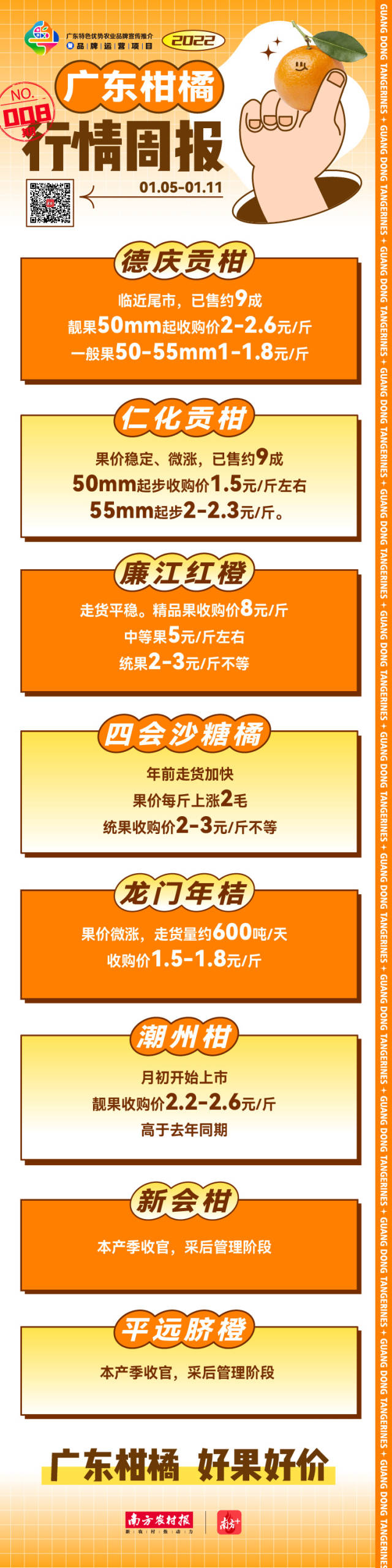 编者按:处于北回归线上最佳种植带,广东是我国柑橘主要原产地之一,收获期从9月至来年3月。在新产季到来之际,南方农村报柑橘通持续推出广东柑橘行情周报,聚焦市场行情,助力好果卖好价,敬请垂注。