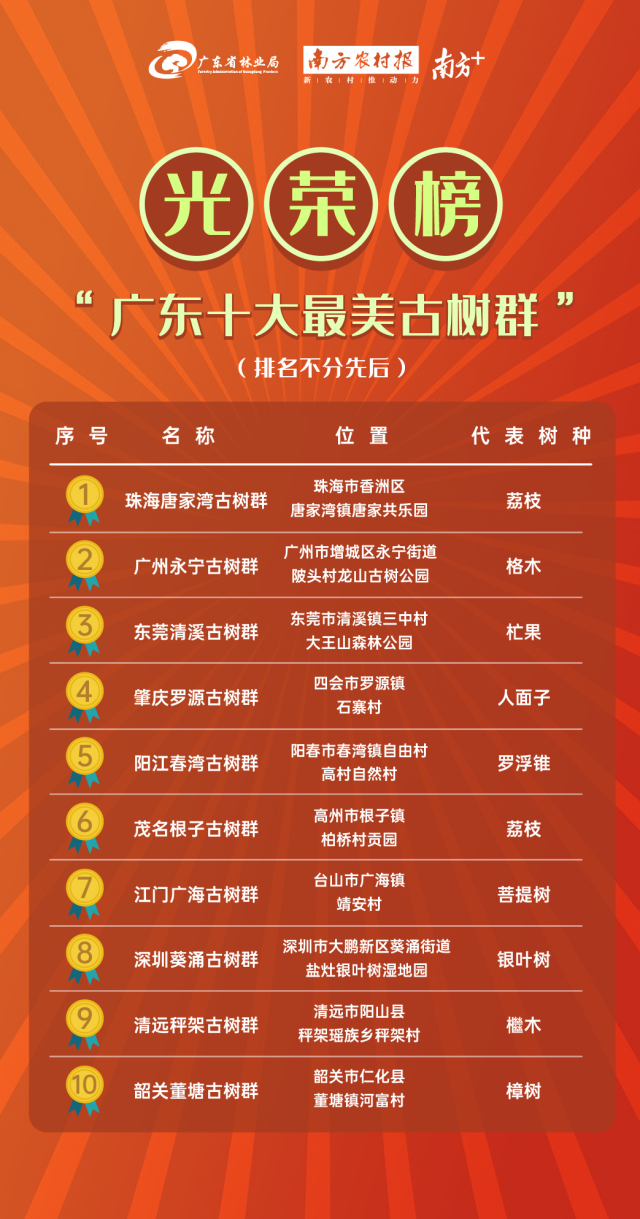 近日,广东省林业局正式公布了“广东十大最美古树群”名单,珠海唐家湾古树群、广州永宁古树群、东莞清溪古树群等10个古树群榜上有名。据介绍,这是我省在评选出“广东十大最美古树”“广东十大魅力古树乡村”后,首次针对古树群和古树文化开展的一个大型森林文化推广活动。