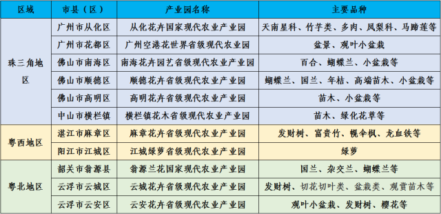 据统计,全省已建设11个花卉现代农业产业园,其中包括从化花卉、翁源兰花2个国家现代农业产业园,主要分布在珠三角、粤西、粤北地区,春节期间的年宵花大部分来自花卉现代农业产业园。珠三角地区拥有6个花卉现代农业产业园,是全省花卉的生产、销售核心产区。