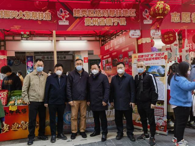 广州市协作办党组成员陈震、广东省粤黔协作工作队广州工作组组长黄焕葆等莅临参观考察。陈震表示,“本次活动是深化粤黔协作的重要实践,通过广州最具代表性的传统花市,实现大范围、高频次展销宣传,进一步打开镇宁农产品在大湾区市场的销量,提升镇宁农产品的曝光率和知名度。”