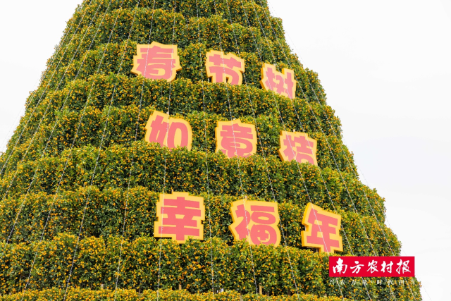 不久前,在陈村花卉世界举行的2023广东迎春网络年货节暨“云上花市”启动仪式中,一座由1138层年桔整齐摆放、总高超过5层楼的世界最高最大年桔塔还惊艳亮相,吉迎八方贵客,年桔文化和品牌知名度进一步提升。