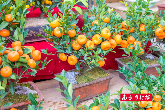 年桔作为传统的年宵花之一,以佛山市顺德区陈村镇出产的最为出名,全国八成的年桔都产自顺德陈村。陈村拥有“中国花卉第一镇”“岭南千年花乡”等称号,种植年桔已有千年历史,最早可追溯至宋朝。作为顺德特产和全国农产品地理标志,陈村年桔因其树形端正、树叶青绿悦目,果形大小均匀、分布丰满而备受消费者喜爱。目前,陈村年桔种植面积约6000亩,全镇种植户约6000人,预计2023年有350万盆年桔上市。
