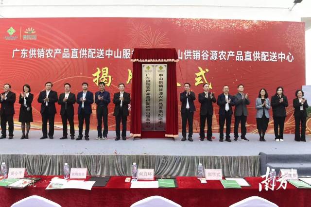 2月10日下午,广东供销农产品直供配送中山服务中心暨中山供销谷源农产品直供配送中心在中山市小榄镇举行揭牌仪式。广东省供销社一级巡视员何启环、中山市政府副市长欧阳锦全等共同揭牌。