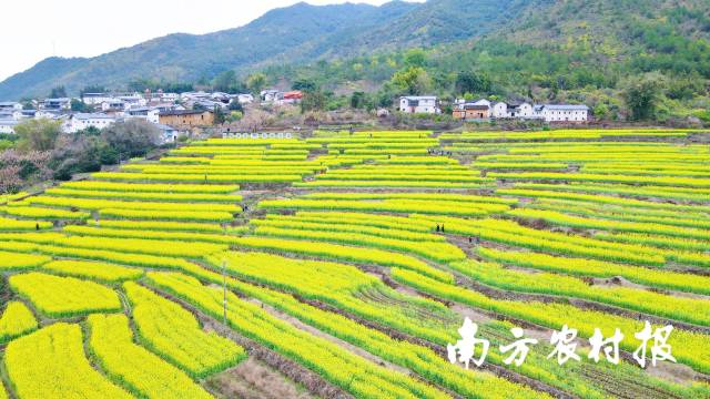 从梅州蕉岭县城出发,驱车沿着蜿蜒的乡村公路,半个多小时便可抵达中国传统古村落蓝坊镇高思村。村里至今保留着多座客家特色古民居,以及一片如链似带的梯田。近日,这片梯田的油菜花正开春意浓,蔚为壮观。