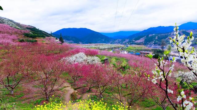 从上世纪90年代初,山地综合开发的时候,乐昌九峰上的农民就在当地的号召下,种下了柑橘、桃、李等作物,等到2014年之后,桃李代替了部分柑橘,面积进一步增大。从2011年前后,就有不少人到乐昌赏花,随着互联网传播力进一步增强,越来越多的游客知道了藏在粤北山区中的这片“桃花源”。