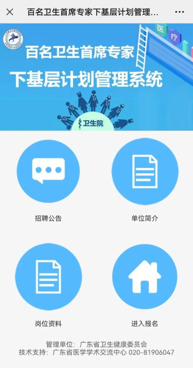 报名系统今天开始启动!为深入学习贯彻习近平总书记关于“三农”工作的重要论述,全面实施乡村振兴战略,推进卫生健康高质量发展,进一步引导和激励卫生健康人才下乡,建强基层卫生人才队伍,提升基层医疗卫生服务能力,提高基层群众对优质医疗服务的可及性和获得感,广东省面向全国选聘百名退休医生担任首席专家。