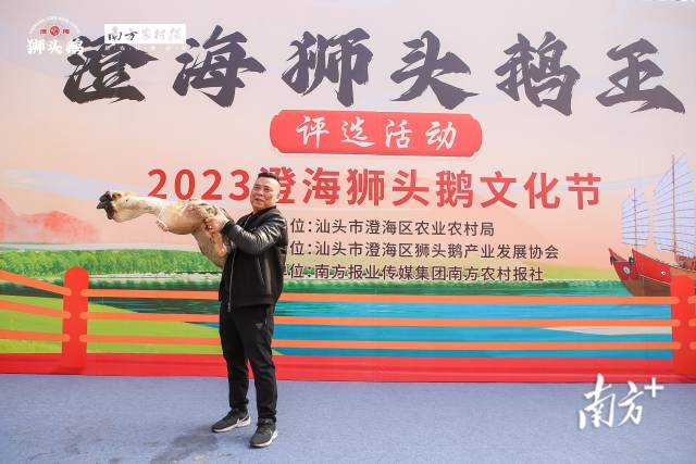 3月3日上午,2023“澄海狮头鹅王”评选活动在澄海区东里镇樟林古港举行。来自8家狮头鹅养殖单位选送的24只大鹅在线同台“竞技”,决选出新一届澄海狮头鹅王。由汕头市澄海区潮鹏生态养殖有限公司陈岳鹏选送的狮头鹅以35.25斤的体重获得“澄海狮头鹅王”的称号。