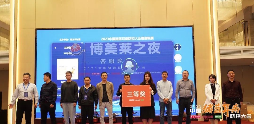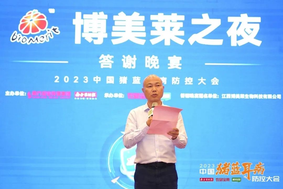 抗“蓝”行动,众志成城。2023年3月15日,由南方农村报主办、农财宝典新牧网承办的2023中国猪蓝耳病防控大会在广州盛大召开。晚间,由江西博美莱生物科技有限公司(以下简称“博美莱”)冠名的答谢晚宴顺利举行,行业精英与资深专家齐聚一堂,在推杯换盏的同时碰撞出发展新思路。