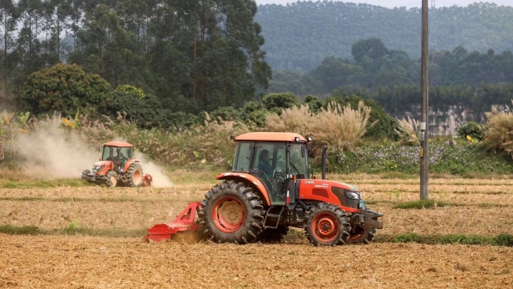 又是一年花正好,春耕备耕正当时。3月23日,新丰县在沙田镇白楼村召开2023年春耕现场推进会。走进春耕现场,沃野田畴间,映入眼帘的是旋耕机行进着犁田翻地,植保无人机在空中来回穿梭,现场人员认真观摩着机耕、机播、机插、无人农机等各类农机装备现场作业,并体验农业金融保险服务等支农下乡活动……