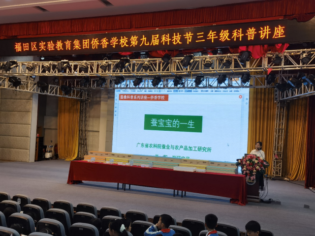 阳春三月,养蚕正当时。3月23日,广东省农业科学院蚕业与农产品加工研究所科研人员赴深圳市福田区实验教育集团侨香学校,开展蚕桑科普进校园活动,为学校带来一堂生动有趣的科普讲座,现场共有300多名来自小学三年级的师生参加。