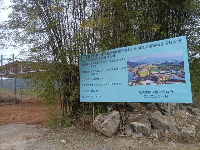 在星安农业新建的油菜花干加工厂前,一块韶关预制菜产业园项目牌显示,该项目为“星安菌蔬绿色循环文旅融合设施设备建设”,总投资400万元,其中省级财政补助占四分之一,为100万元。按照要求,该项目将于2023年12月份完工。据了解,目前该项目已初步完成厂房棚顶结构建设和设备定购。
