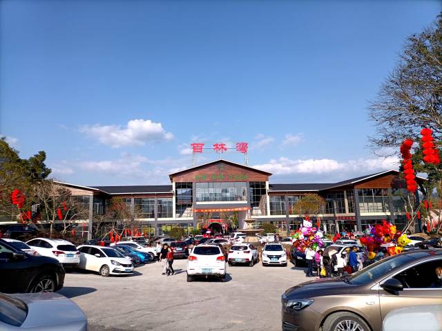 刚下韶赣高速,记者从大塘出口沿106国道南行5分钟车程,路旁豁然开朗,一片油菜花海洋“闯”入眼帘,这就到百林湾生态园了。