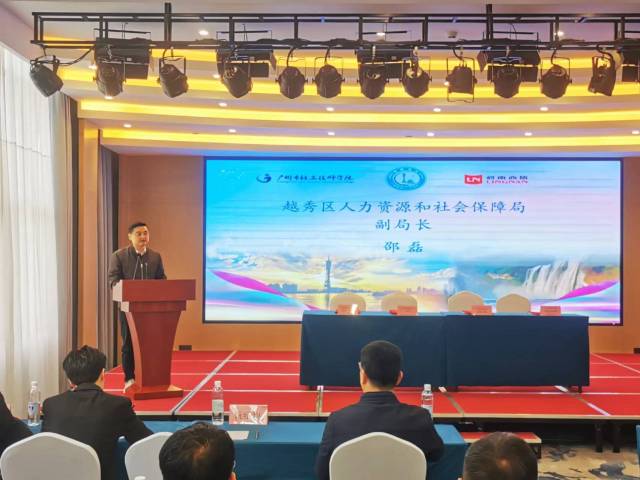 安顺市镇宁自治县人民政府副县长郭星,广州市越秀区人社局副局长邵磊,安顺市就业局副局长金亮、镇宁自治县人社局副局长张运涛,广州市轻工技师学院党委书记成振洋、岭南商旅投资集团有限公司党委组织部部长康永平等出席了授牌仪式。