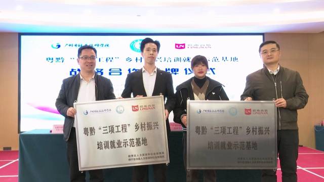 3月31日,“粤黔‘三项工程’乡村振兴培训就业示范基地”的授牌仪式在贵州省镇宁自治县举行。广州市轻工技师学院、岭南商旅投资集团有限公司作为基地共建方,与广州、镇宁两地人社部门签订了四方战略合作协议。