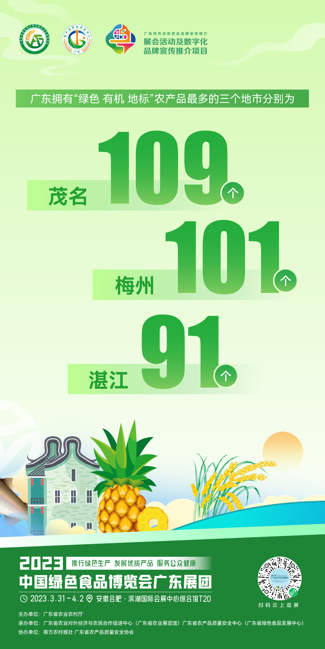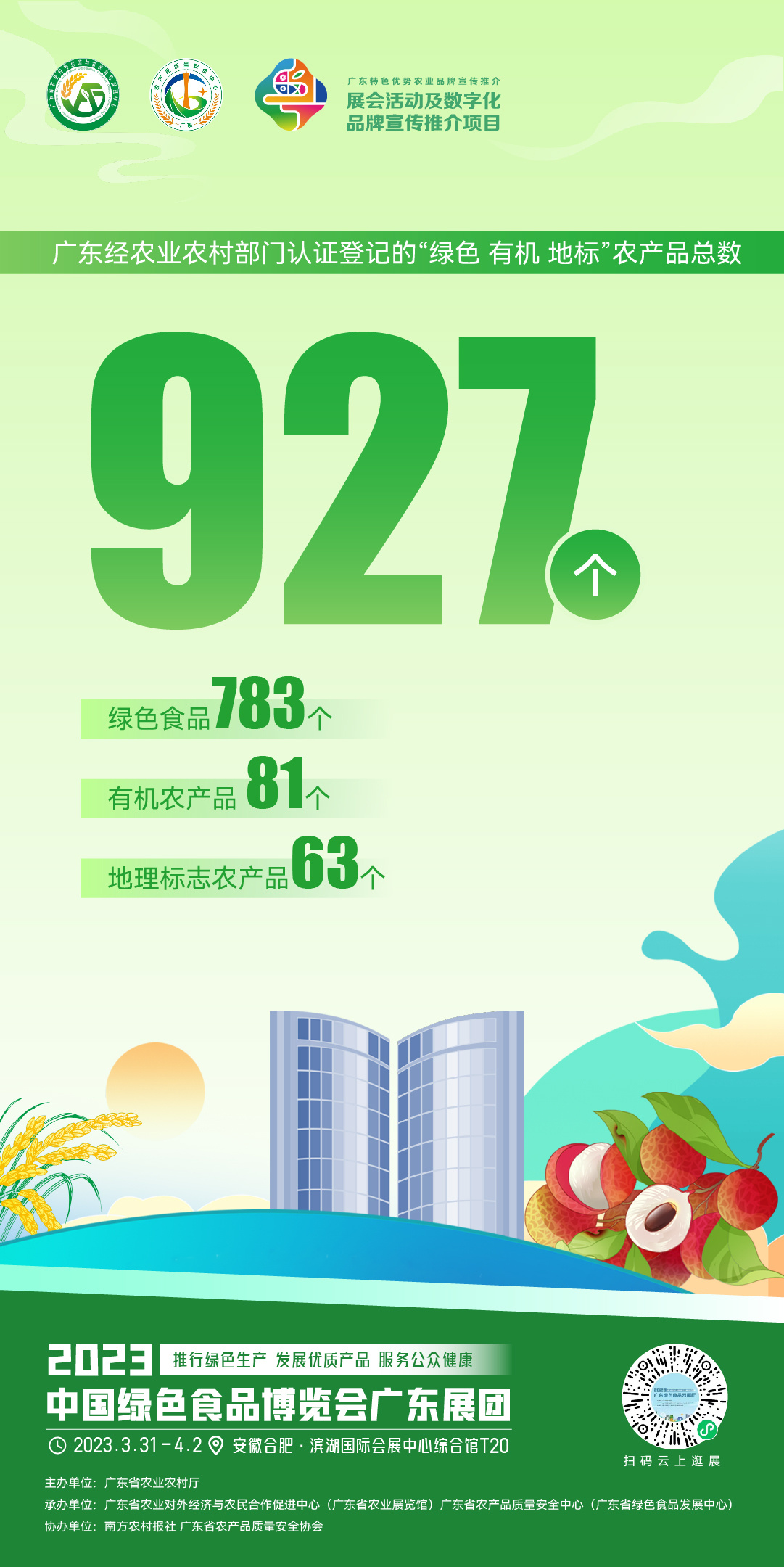 2023年中央一号文件指出,推进农业绿色发展。如今,绿色正成为广东农业高质量发展底色。全省经农业部门认证登记的“绿色有机地标”农产品总数927个,其中绿色食品783个,有机农产品81个,地理标志农产品63个。本届绿博会,广东省农业农村厅将会组织全省绿色有机食品代表企业参与展销,亮相2号馆T20和3号馆8T30展位,与观众共品绿色、有机优质美味。我们不见不散!