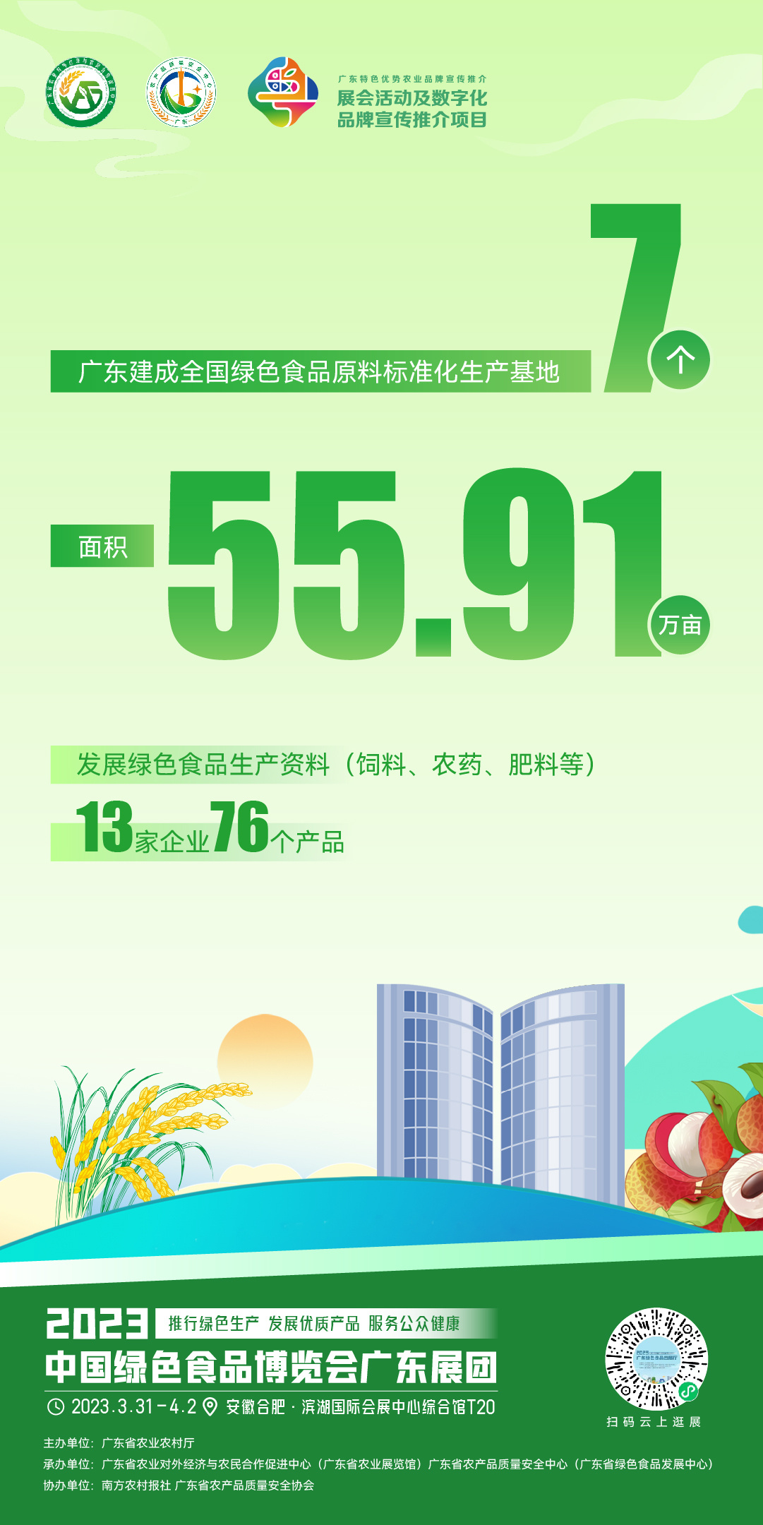 推行绿色生产、发展优质产品、服务公众健康。为增加绿色优质农产品供给,提升绿色食品品牌知名度,3月31日-4月2日,第二十二届中国绿色食品博览会将在安徽合肥滨湖国际会展中心举办。绿博会是国内绿色食品、农产品地理标志产业的展示和贸易洽谈盛会,本届绿博会总展示面积约2.3万平方米,邀请36个展团参展,展会期间还将举办多场推介会和产销对接会。