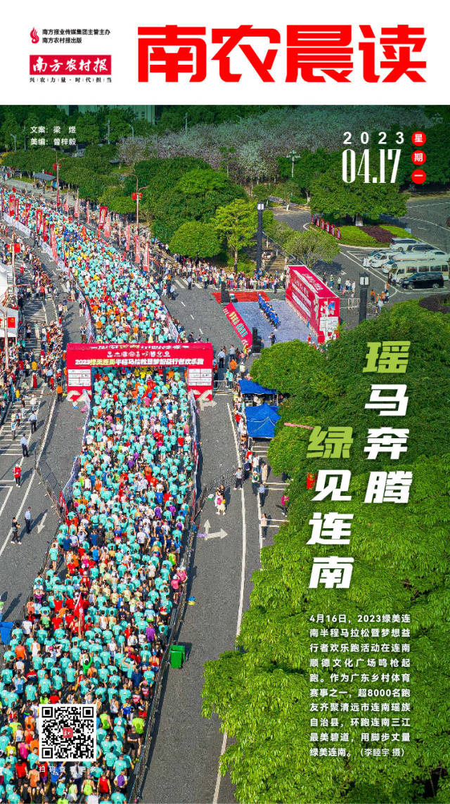 4月16日,2023绿美连南半程马拉松暨梦想益行者欢乐跑活动(下称“瑶马”)在连南顺德文化广场鸣枪起跑。作为广东乡村体育赛事之一,超8000名跑友齐聚清远市连南瑶族自治县,环跑连南三江最美碧道,用脚步丈量绿美连南。