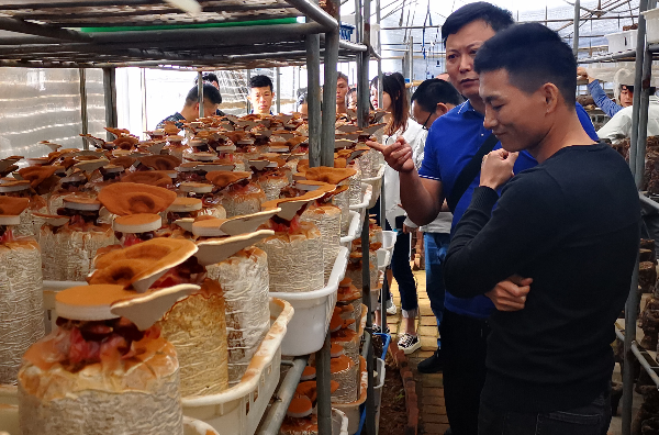 培训会上,何焕清就广东常见食药用菌栽培品种、灵芝栽培和孢子粉收集工艺流程及食用菌经营性栽培要领等方面做了详细讲解和案例分析,课后还到菌包制作车间和灵芝种植场向学员讲授栽培实操要领,并进行了现场交流。通过此次培训,种植户、企业技术人员更新了相关技术和知识,表示受益匪浅,希望能继续得到专家的技术指导和帮助。