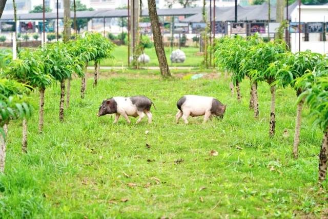 除此之外,更有花式多样的亲子互动项目,孩子们可以在生态园里同小猪、小鸭子等小动物们亲密接触,享受亲手投喂的乐趣。蓝天,草地,鲜花、微风,家长们即便只是坐在这里,也能惬意消磨时光。