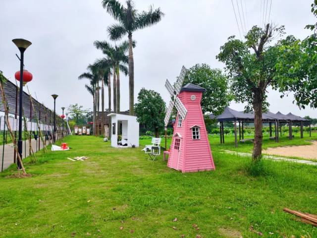 4月27日,在江海区都市农业生态园,工作人员正在紧锣密鼓地搭建帐篷、布设摊位,“时尚感”和“烟火气”随之而来。
