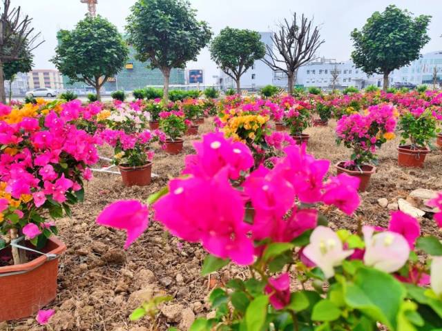 与此同时,生态园还为游客搭建了专门用来打卡的场景,摆放了三百多盆的簕杜鹃花圃,繁花似锦,有乳白色、玫红色、粉紫色,五彩缤纷,争奇斗艳。