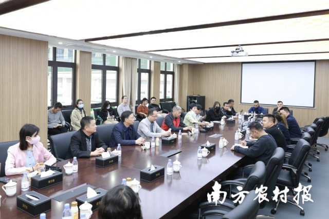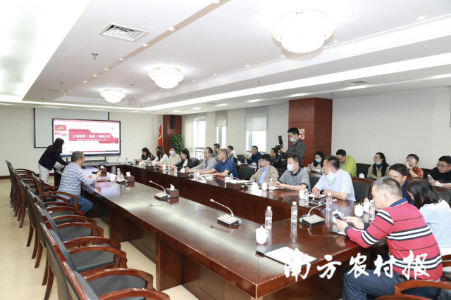 座谈会上,来自广东各市县农业行政部门有关负责人与清美集团供应链相关负责人讨论全产业链服务商的采购模式,并询问当地产品在沪的销售渠道,探讨合作的可能性。