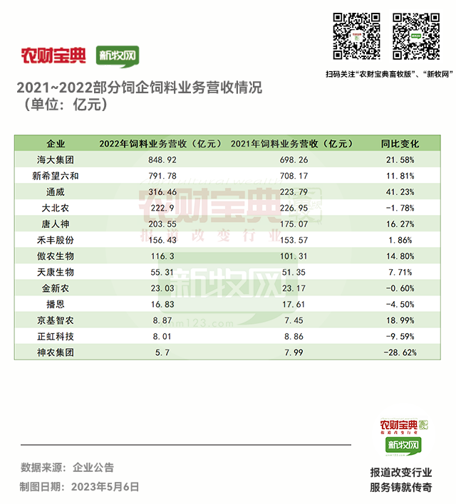 海大饲料营收849亿元跃首位,10家上市饲企实现盈利