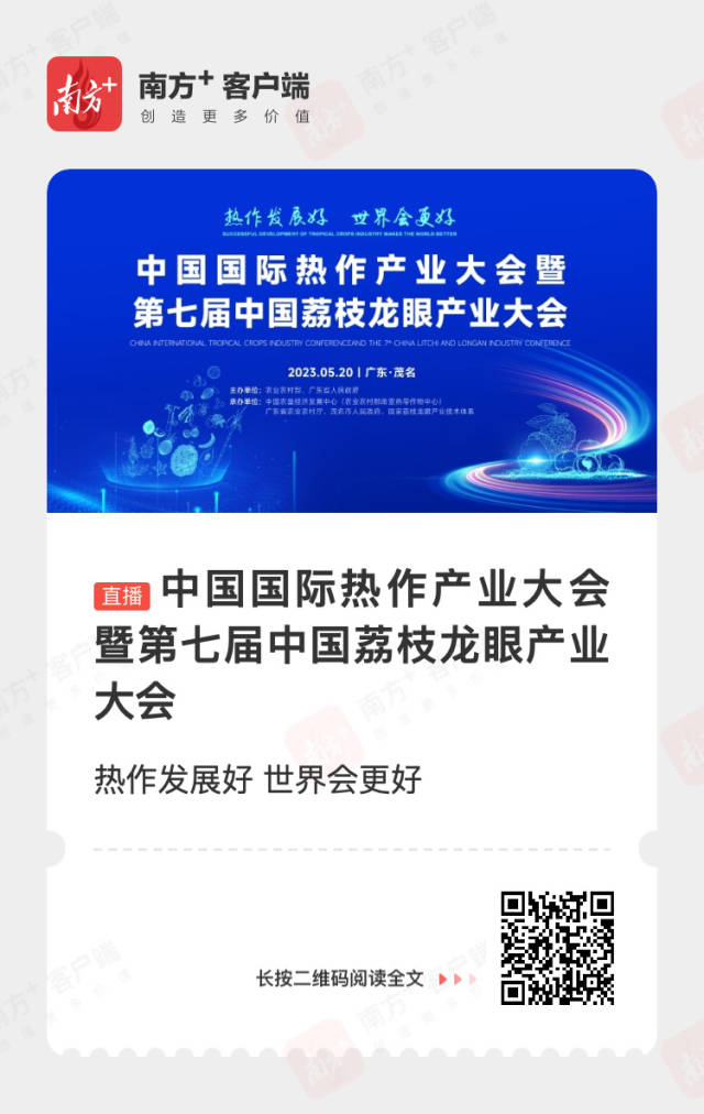 5月20日,中国国际热作产业大会暨第七届中国荔枝龙眼产业大会将在茂名举办,活动以线上线下结合的形式,搭建国际热作产业交流平台,推动各国在热作产业领域的务实合作,促进全球热作产业可持续发展和互惠共享。