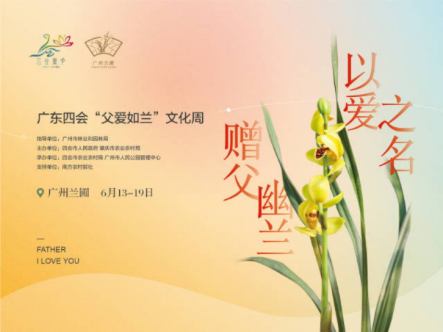 为持续推进四会兰花“12221”市场体系建设,以文化赋能乡村振兴,6月13日,广东四会兰花将携手广州市第一批十大历史名园——广州兰圃,开展广东四会“父爱如兰”文化周活动,邀请广大市民共赴兰文化盛会。这个父亲节,别忘记和我们的“超级英雄”一起,踏入兰圃,看山水迎客,赏四会兰花,诉脉脉父子情。