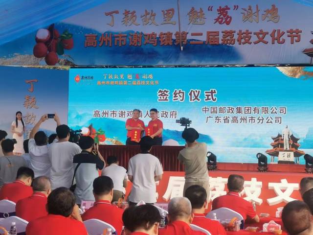 随后,中国邮政高州分公司与谢鸡镇政府签订了《2023年高州荔枝销售暨冷链物流战略合作协议》意向书,并在活动最后联合举行了荔枝冷链运输发车仪式。