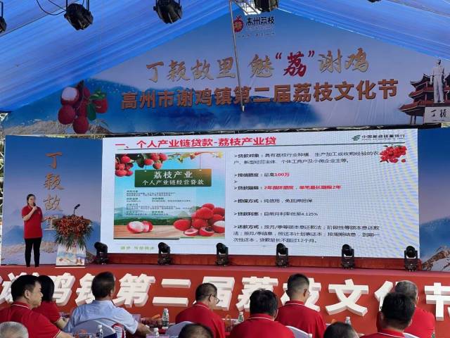 活动期间,中国邮政集团有限公司广东省高州市分公司、中国邮政储蓄银行高州市支行代表分别就寄递降费提速、特色产业链贷款方案作介绍发言。中国邮政荔枝寄递增设集散航空专线,开通北京、济南、西安等12条陆运冷链专线,构建“航运+陆运”立体运输体系,确保全国56个城市“今天寄明天到”,为荔枝出山进城保驾护航;邮储银行针对荔枝产业链提供了一揽子资金服务方案,并对谢鸡镇进行整镇授信5亿元,注入金融活水。