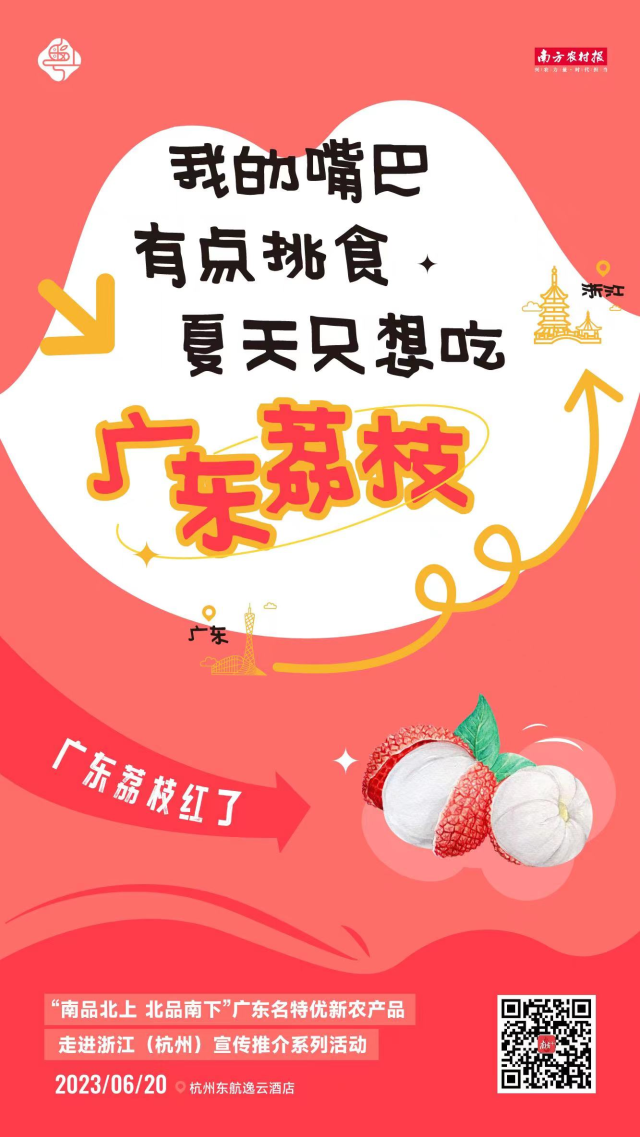 6月20日,这里即将举办“南品北上 北品南下”广东名特优新农产品走进浙江(杭州)宣传推介系列活动。广东荔枝、广东龙眼、广东兰花、粤味预制菜等应季产品应约亮相西湖,在杭州掀起一场属于广东的美食风潮。