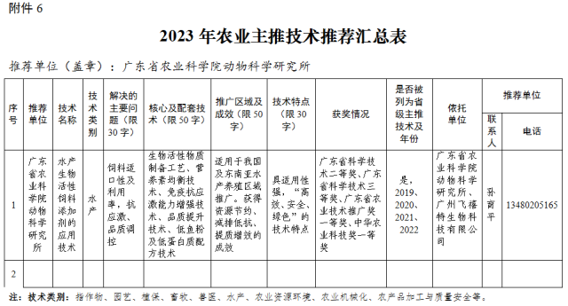 8. 水产生物活性饲料添加剂的应用技术”入选2023年农业农村部主推技术。