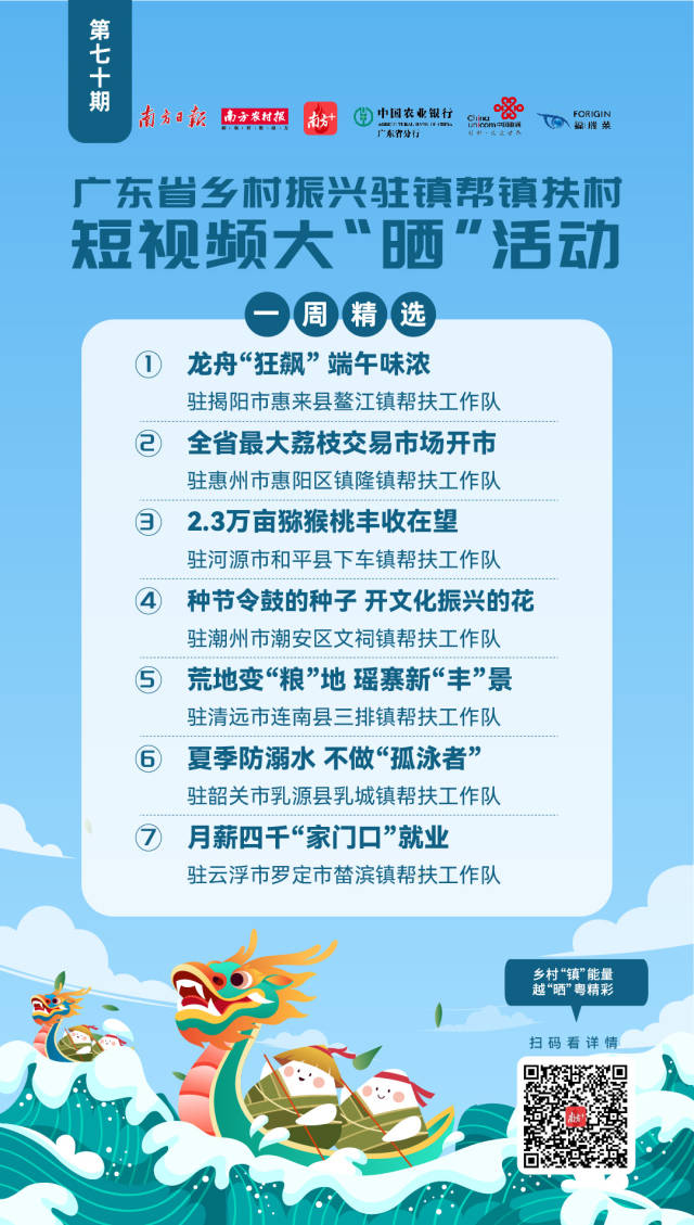 以“乡村‘镇’能量,越‘晒’粤精彩”为主题的广东省乡村振兴驻镇帮镇扶村短视频大“晒”活动于2022年2月全面启动。活动在南方+APP开辟专区,鼓励各驻镇帮扶工作队比“晒”行动做法、成效亮点、实事好事。主办方每周将精选出部分优秀参“晒”作品进行展播。无论是晒工作经验做法,还是秀驻镇风采人物趣事,均有机会上榜驻镇帮镇扶村短视频大“晒”一周精选,敬请垂注!