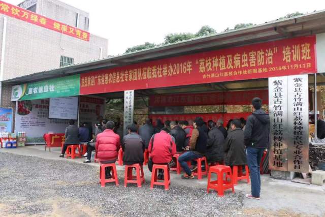 叶浓青正在给果农讲解荔枝种植与嫁接技术。