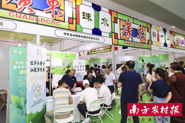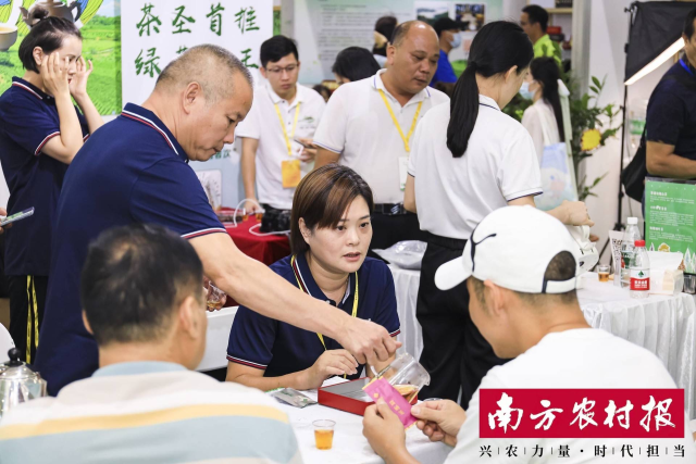 在柏塘镇展位,南方农村报记者见到了一位特殊的“布展员”和产品“推销员”。讲起茶来头头是道,不时招呼来往的茶商,还偶尔叮嘱同伴几句。说他“特殊”,因其并非是前来参展的企业老板,而是柏塘镇政府相关负责人。