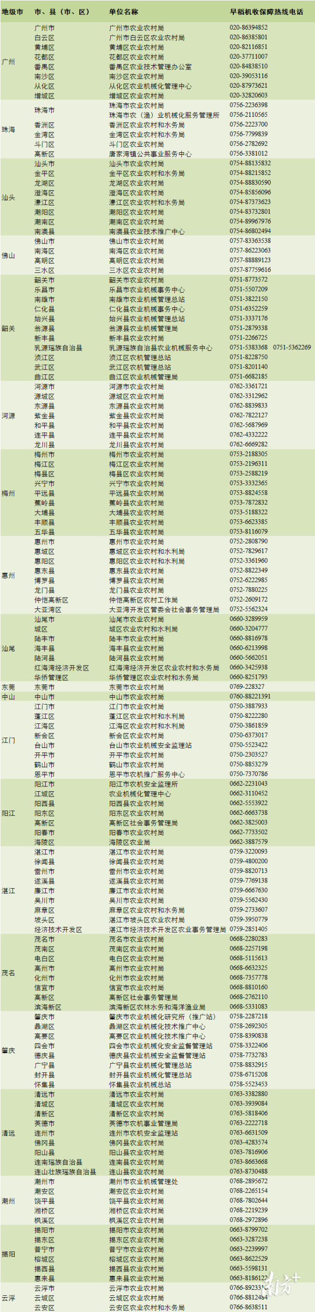 进入7月,广东1300多万亩早稻进入集中收获期。为高质量、高效率推进早稻抢收、晚稻抢种工作,充分发挥农机主力军作用,广东6月中旬公布20个地市136个单位的早稻收割服务热线,全力做好农机生产组织调度及指导服务工作,保障粮归仓、种下地。