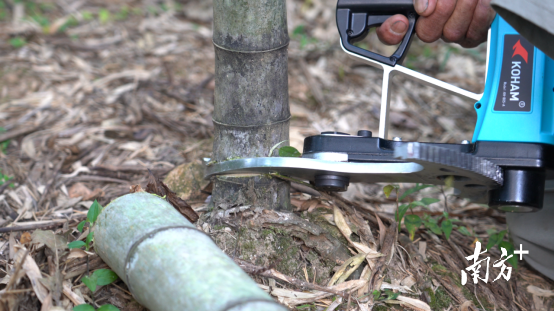 在竹业第一产业初加工中,砍竹是第一步。这是一个力气活,一把砍刀需要选准竹子根部,几下功夫,竹子被砍开,再补上几刀,碗口粗的竹子被砍倒。