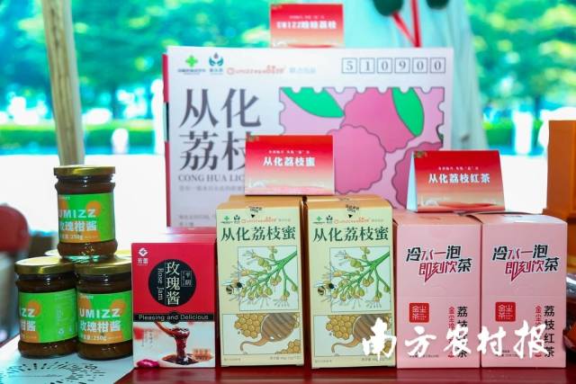 除了爽脆可口的荔枝鲜果,现场还有荔枝饮品、荔枝干、荔枝红茶、荔枝蜜、荔枝酥等各类风味独特的加工产品,给前来游玩赏景的游客送上一份夏日的清甜。