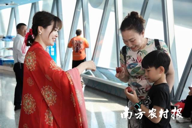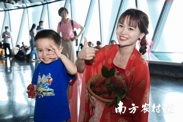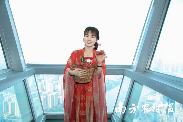 品从化荔枝,赏羊城美景。7月15日,2023广州从化荔枝及加工农产品推介活动在广州塔举行,十余家企业携一众从化特色农产品亮相广州塔,从化荔枝压轴品种——流溪红荔登上“小蛮腰”,在433米高空,为游客打造一场美景美“荔”两不负的甜蜜盛宴。