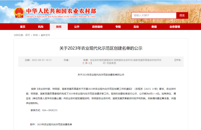 据农业农村部官网8月1日消息,农业农村部、财政部、国家发展改革委组织完成了2023年农业现代化示范区创建评审工作,并将拟创建名单进行公示。广东省南雄市入选2023年农业现代化示范区创建名单。