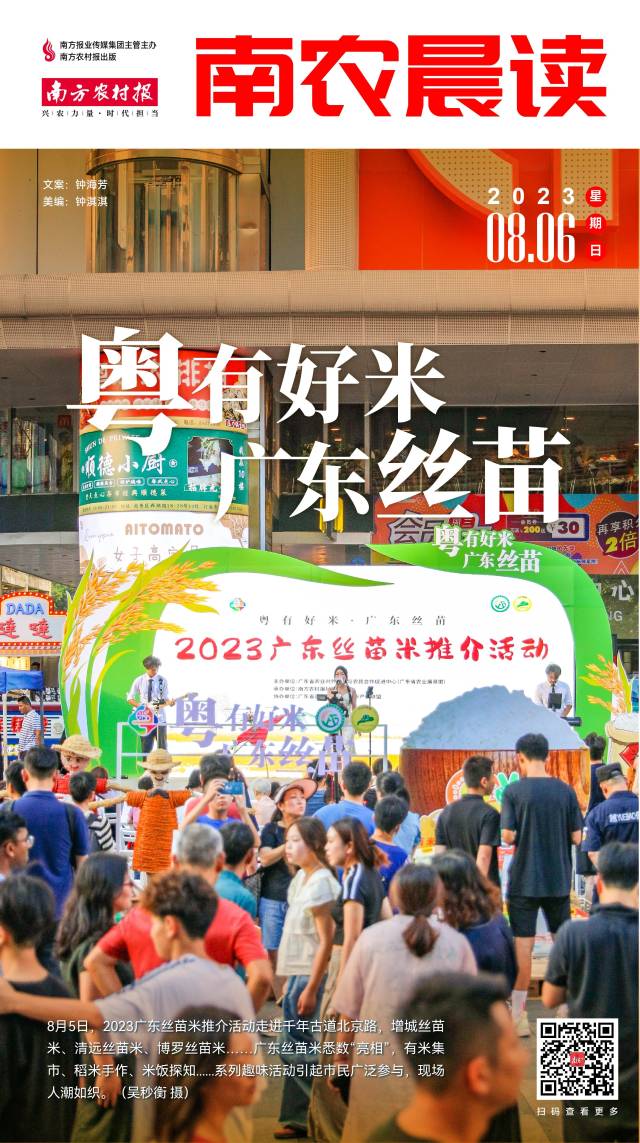8月5日,由广东省农业对外经济与农民合作促进中心主办,南方农村报社承办,广东省农学会、广东丝苗米产业联盟协办的“粤有好米·广东丝苗”——2023广东丝苗米推介活动在广州北京路步行街举行。