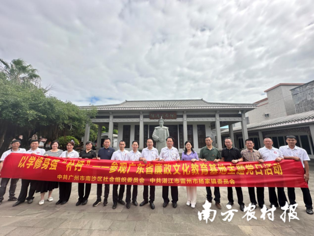 8月9日,苏茂庆等一行到广东省廉政教育基地进行交流学习,先后参观陈瑸纪念馆、陈瑸廉政史迹展览馆、家风馆、初心堂等。苏茂庆表示,区社会组织党委要进一步引导社会组织党员牢记“信念坚定、为民服务、勤政务实、敢于担当、清正廉洁”新时代好干部标准,做合格党员,培养自身廉政意识、弘扬清风正气。杨家镇党委书记梁张照说,杨家镇将持续加强作风建设,坚持实事求是,持之以恒正风肃纪,营造风清气正、干事创业良好环境,全面推进落实好乡村振兴工作,力争杨家镇乡村振兴工作出新出彩。