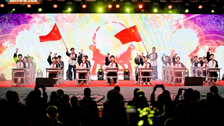 锣鼓铿锵奏鸣,两头狮子灵动腾跃,醒狮表演揭开“村晚”序幕。随后,各类风格的舞蹈渐次登场。