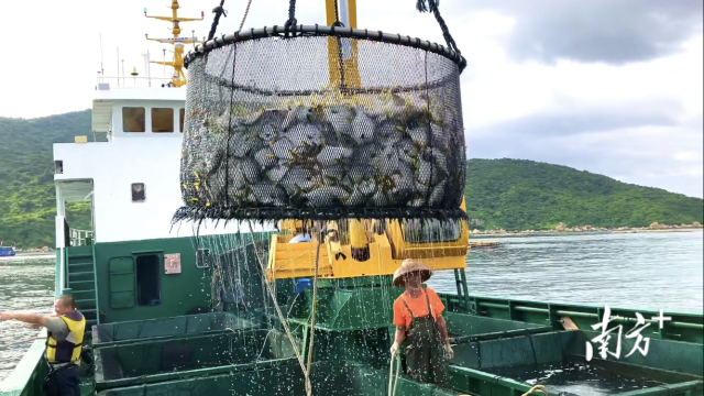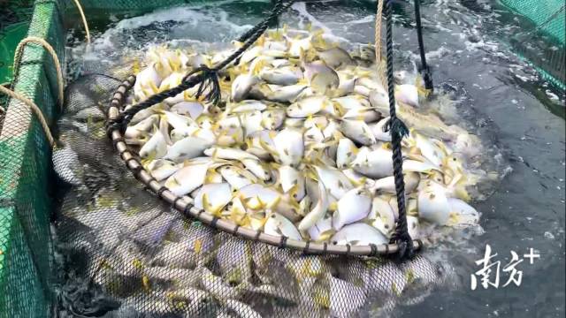 “金鲳鱼耗氧量大,成功养殖金鲳鱼的地方,水质条件往往比较好。”广东大麟洋海洋生物有限公司技术负责人吴俊表示,深水网箱规模化养殖极大改善了养殖条件,提高了金鲳鱼的数量和质量。“这里的金鲳鱼口感好,品质接近野生,非常受市场欢迎,本次起货的全部金鲳鱼在2天内便可全部售出。”收鱼商刘总介绍,他是来自香港的采购商,以往每年都在这里收金鲳鱼,本次的渔获将全部售往香港。